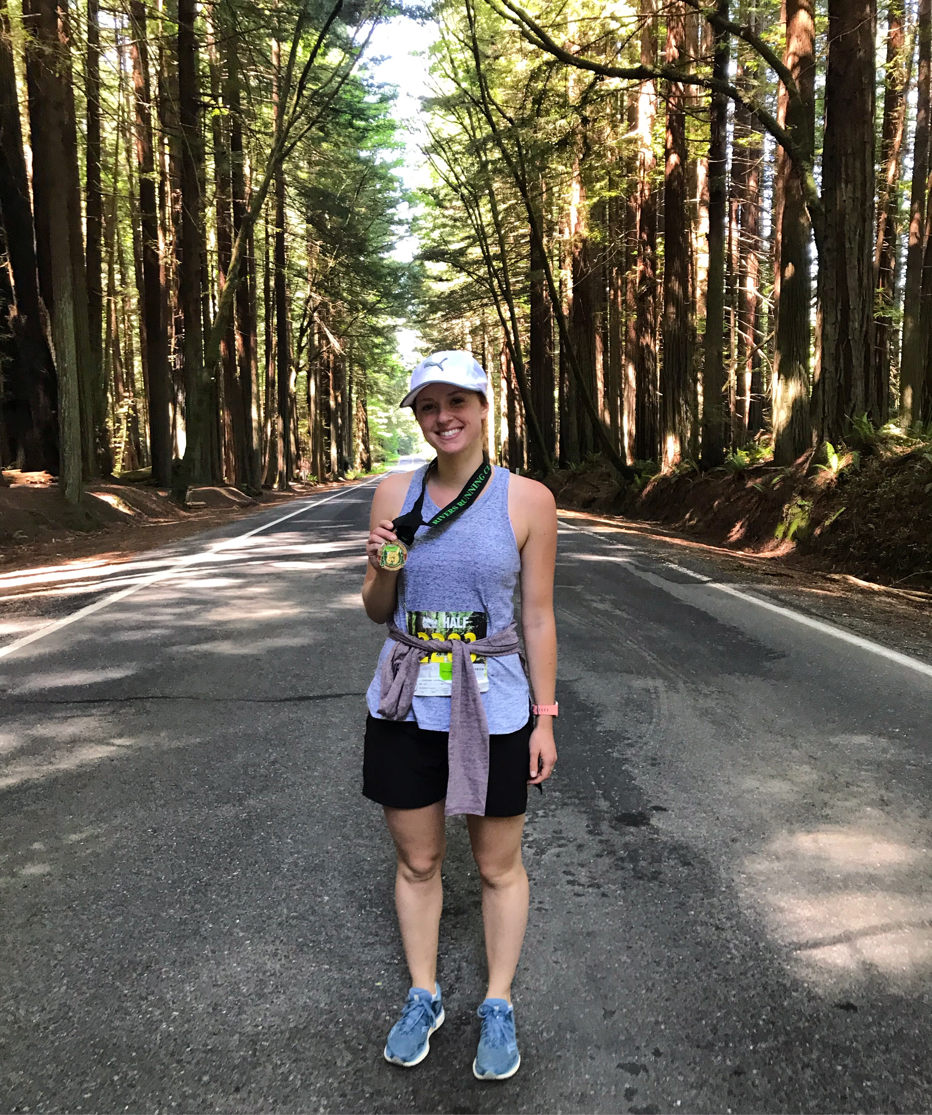 Next step – bring in the big guns. For me, the big guns were my adorable, blonde, bubbly trainer. I confided in her my goals of running a half marathon. I knew if I was going to do this, I wanted to run the Avenue of the Giants Half Marathon. It felt so symbolic and meaningful. When I looked online it was only a couple months away, but I had already been running, did she think I could be ready for it? Of course she did (she had more confidence in me through this whole process than I ever did). She put together a weekly running schedule to help me get ready. It was flexible and I could make it work with my travel and work schedule. The schedule she put together was great, and in the beginning I tried to follow it pretty closely, as I got more confident and further into the process (and learned my body better), I started straying a bit. The guidelines and advice she laid out were critical to my success, but her most important role was being a morale-booster, supporter, cheerleader, and accountability partner. I kept her updated almost daily on my runs (or lack thereof), and how I was feeling. Every time I uttered concern or self-doubt, she was there to tell me I could do it! She really kept me going and pushing through. Plus by letting her into my dream/goal it felt as though I had made the commitment to her too, and I damn sure didn’t want to let her down.