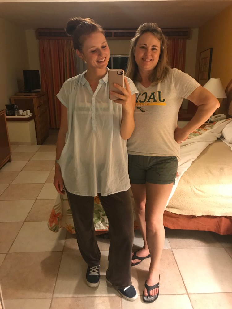 Finally the 66 pound monstrosity is settled nicely into a new room with a balcony overlooking the ocean (we’re assuming on this last part because it’s dark and you can’t actually see the ocean, but we feel pretty close to it and can certainly hear it). All is well, we hit the buffet for dinner (I feel like a real hillbilly saying that, but it’s an all-inclusive resort so buffet life it is) and have our fair share of drinks. The night ended well, as we drank on the balcony, laughed, and pictured the ocean that we think is right outside our room. It is at this moment Jamie and I thought up a post-vacay blog of which she will be co-writing. Get ready people, a little something to look forward to.