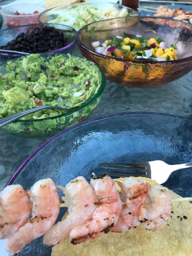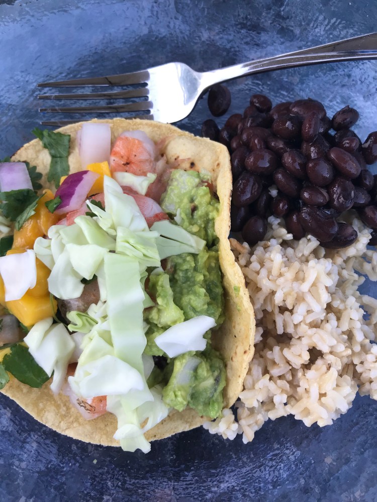 I love a refreshing, easy, dinner recipe for summer. I also love any dinner that can be cooked on the barbecue and enjoyed outside. That’s the whole point of summer dinners! I’ve had a hankering for shrimp tacos and mango salsa for some time now, and with limited restaurants in my town, I had to become the guac-and-salsa making machine!