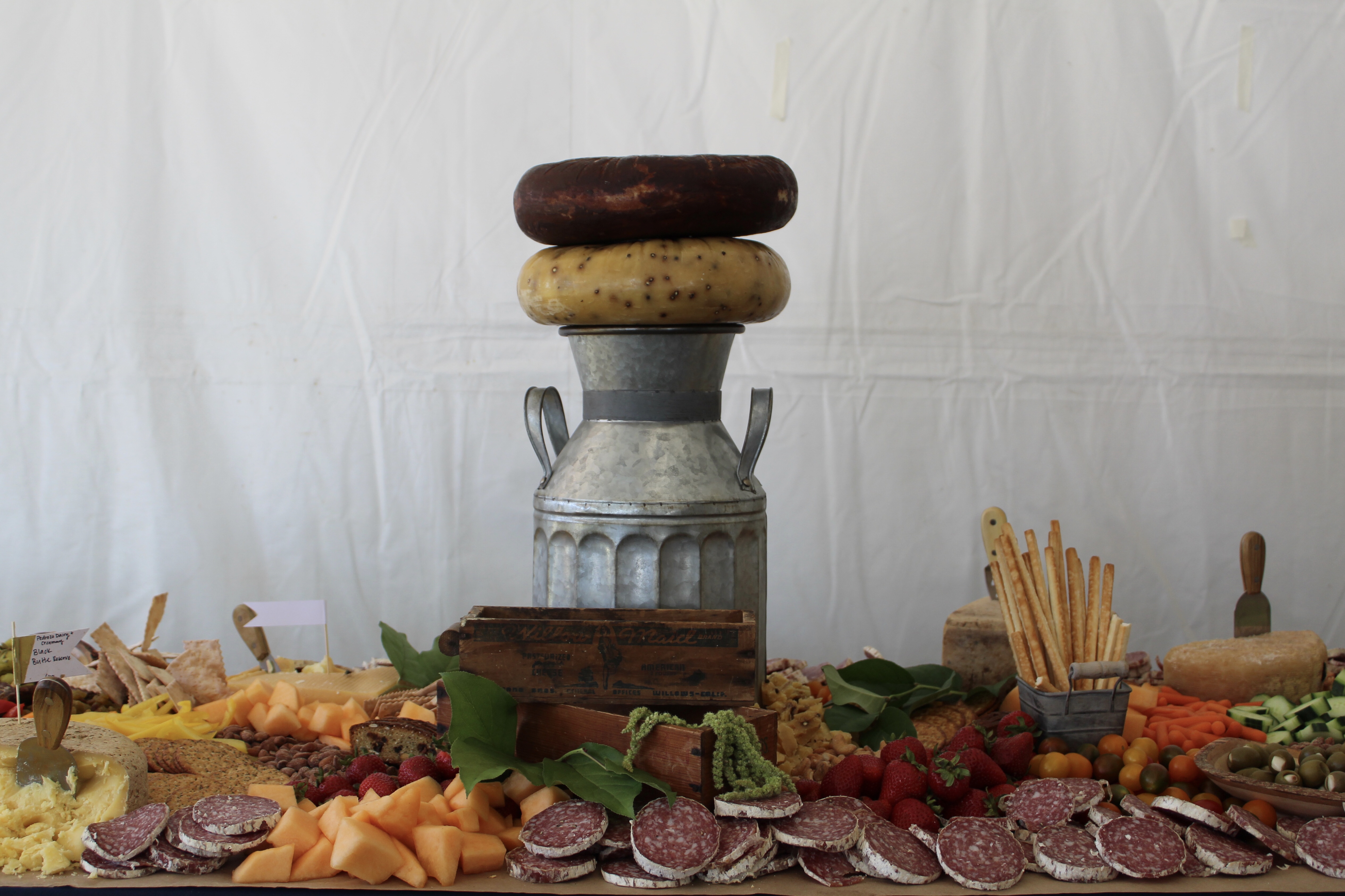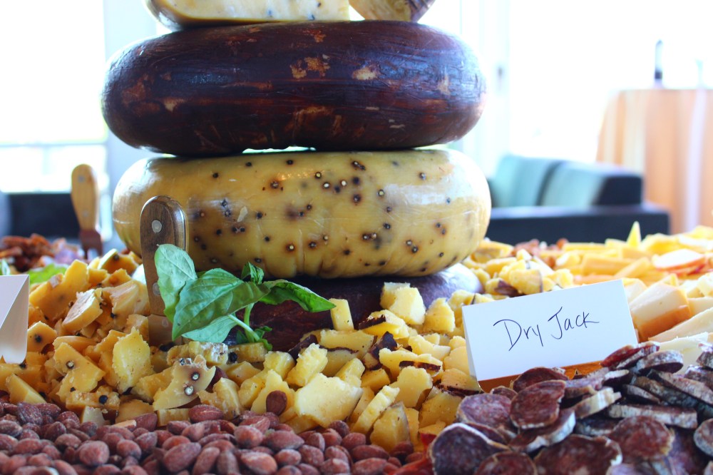 This was never more clear than at the centennial celebration this past week. Set at a picturesque winery in Napa Valley, friends and industry leaders gathered from near and far to celebrate. Featured in the middle of the room was a nine foot cheeseboard decorated with California-made cheeses, Rumiano Dry Jack and Peppato playing the leading roles. These cheeses were the original creations of the Rumiano Family and remain the crown jewels. True California Originals, they were crafted out of need. A halt on availability of Italian cheese during the war drove the conception of these hand-rolled wheels. With adequate age, Dry Jack (a simple cheese with a nutty, buttery flavor), and Peppato (Dry Jack with whole peppercorns for a gusto of flavor), can be grated, shredded, or elegantly served on a cheeseboard. These two cheeses are still hand-rolled and aged on the original racks, in the war-era hand dug cave.