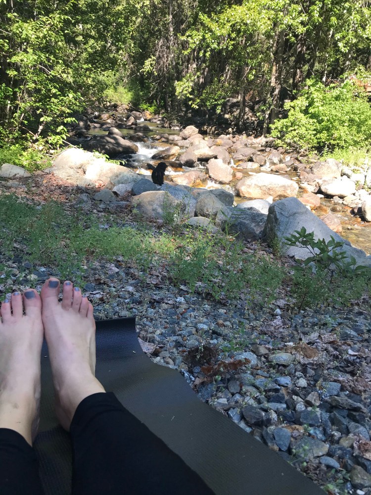 It is quite comical the changes I have made in my journey to peace and happiness. I am just a lil old hillbilly, looking for some G.D. namaste. And quite frankly, my little yoga sesh could not have been more peaceful – the river drowned out all other noises, the sun was out, and the fresh air filled my lungs.