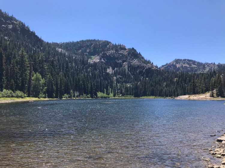 The lake was gorgeous, and shocking to find in the middle of the mountains. It was full of people (and loud kids), who had backpacked in and were camping. We found an open spot to tie the horses, eat lunch, swim, and while the rest of the gals went fishing and exploring, I soaked up some sun and read. Minus the (very) loud children (no, I don’t have children and I drove/rode 10 hours into the wilderness for some peace and quiet so I am going to bitch a little, okay?) it was beautiful and relaxing.