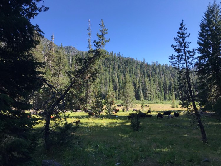 Day 1, Thursday: This was our travel day! And boy what a day it was. I was busy that morning finishing up errands and getting everything loaded in the car (naturally I was in charge of the groceries). Around lunchtime I met up with mom, Shelly, and Stasha in Weaverville. They had the trailers and horses, so we made quick getting out of Weaver Town. From there it turned out to be much farther than any of us thought. Most of us had been led to believe we were going to the Trinity Alps. Wrong. As we were driving through Etna, we discovered it was the Marble Mountains we were in fact going to… This is about the time we all started second-guessed Patty’s instructions. She does not have the greatest track record…