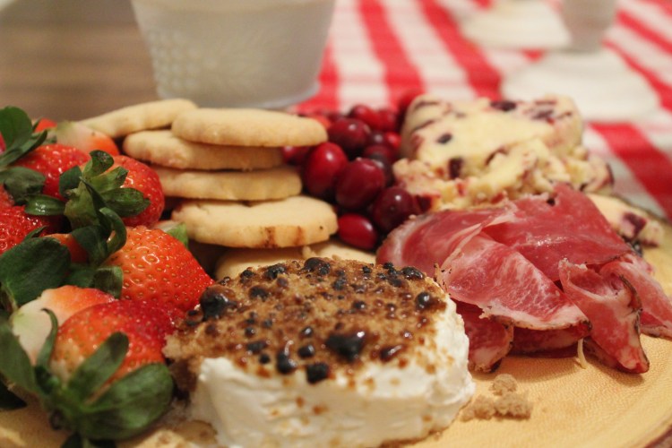 My last couple steps included back-filling any empty spaces with additional crackers, meat, nuts, sweets, and cranberries. As well as torching the final details… A must on my winter boards is Cypress Grove’s Ms. Natural topped with brown sugar and toasted like crème brûlée. It is a showpiece and so tasty. For anyone who says they don’t like goat cheese, have them try this! (Or any of Cypress Grove’s cheeses. I am not a huge fan of goat cheese either, but their fresh, mild, exquisite cheeses are the best.)