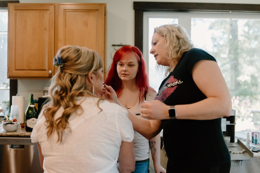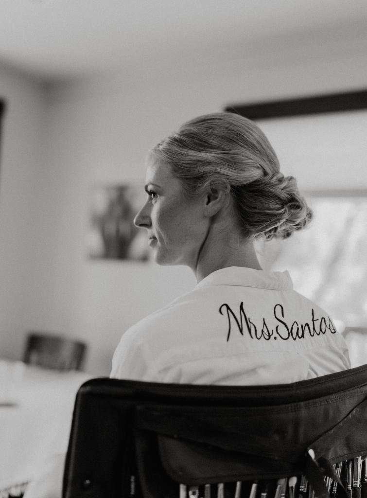 I started the day with a cup of coffee outside (fresh air is my version of a chill pill), and writing up our list of thank yous for the reception. Kenzie, my Maid of Honor, got breakfast ready as we waited for the rest of the girls. I had little gift bags waiting for each of my bridesmaids with a flannel sleep dress to get ready in (with their names on the back), socks with a print that reminded me of them, a pair of butterfly earrings to wear that day, and a card. I also had little flannel dresses customized for our flower girls! So tiny and so cute.