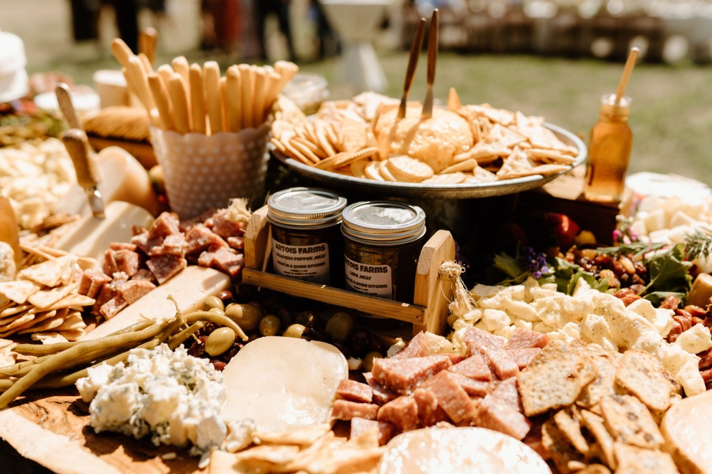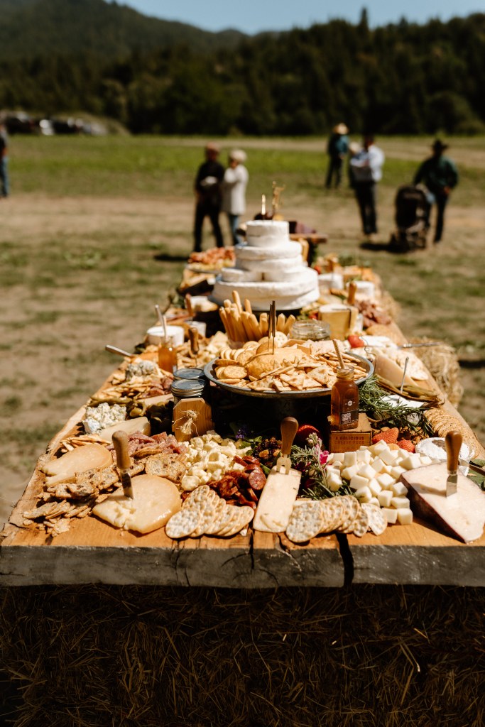 - Cheeseboard – I had been dreaming of this board for as long as I can remember. Specifically, I had been wanting a brie wedding cake… check, check! People loved this special board, as it was very “us”. It was also delicious, and great for snacking/appetizers between the ceremony and dinner. Featured on this board were all of my favorite cheeses and vendors, along with local and family goods. We had my Aunt’s cheeseball (one of my favorites!), as well as the salami and sausage my step dad and grandpa make. Some of the cheese companies on our cheeseboard were: Pt. Reyes, Face Rock, Sartori, Rumiano, and Reny Picot. This was a huge hit!