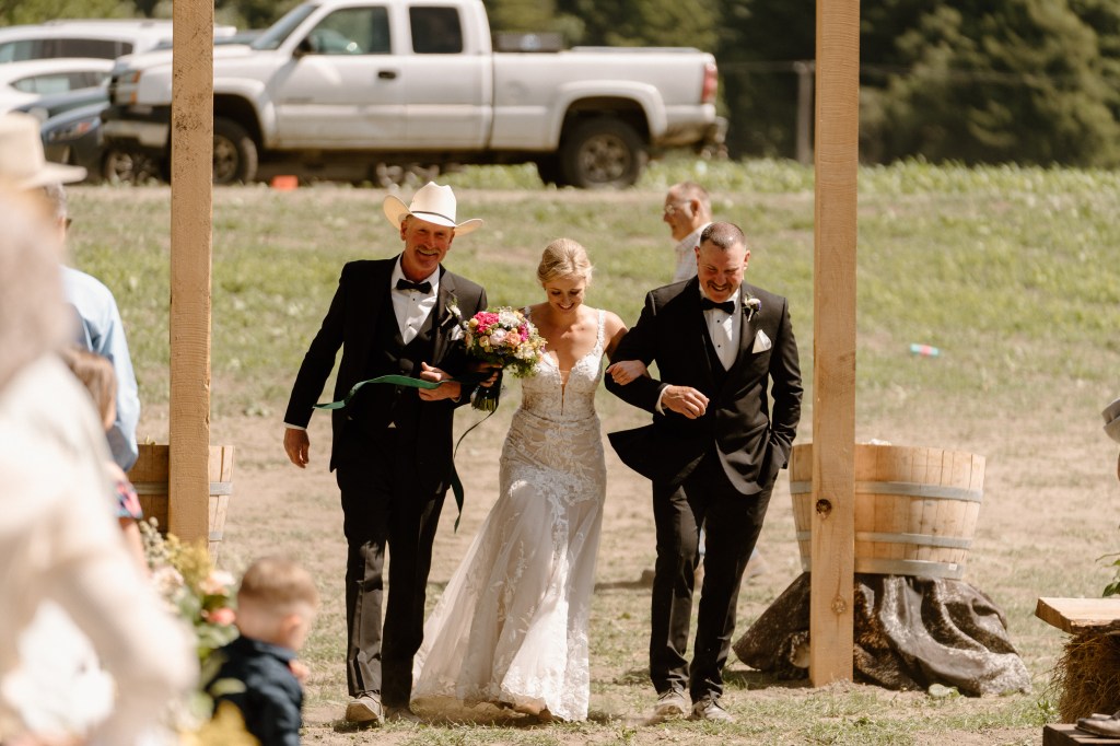 - First dance: All Your’n (Tyler Childers), cut into You Ain’t Dolly (Ashley Monroe/Blake Shelton) This was so fun!! We are not very sappy, so we did a short and sweet clip of an upbeat love song, then switched into a faster-paced song that made us crack up! I can hear it now – “You ain’t Dolly/And you ain’t Porter/She’s a little bit fuller/And you’re a whole lot shorter”. I think everyone got a kick out of this little surprise!