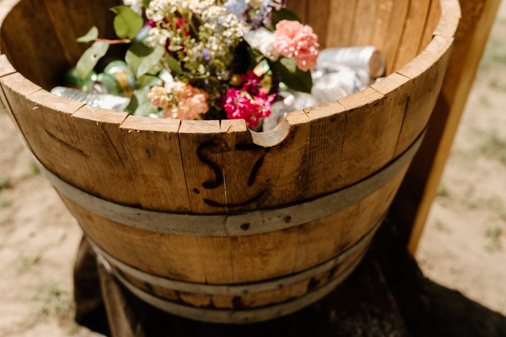 - More ice – my goal was to fill up the half wine barrels, but I didn’t order enough ice, so they looked a little empty and not a luscious as I had hoped (we also put a vase/bouquet of flowers in each to add some color). My advice – order more than you think!