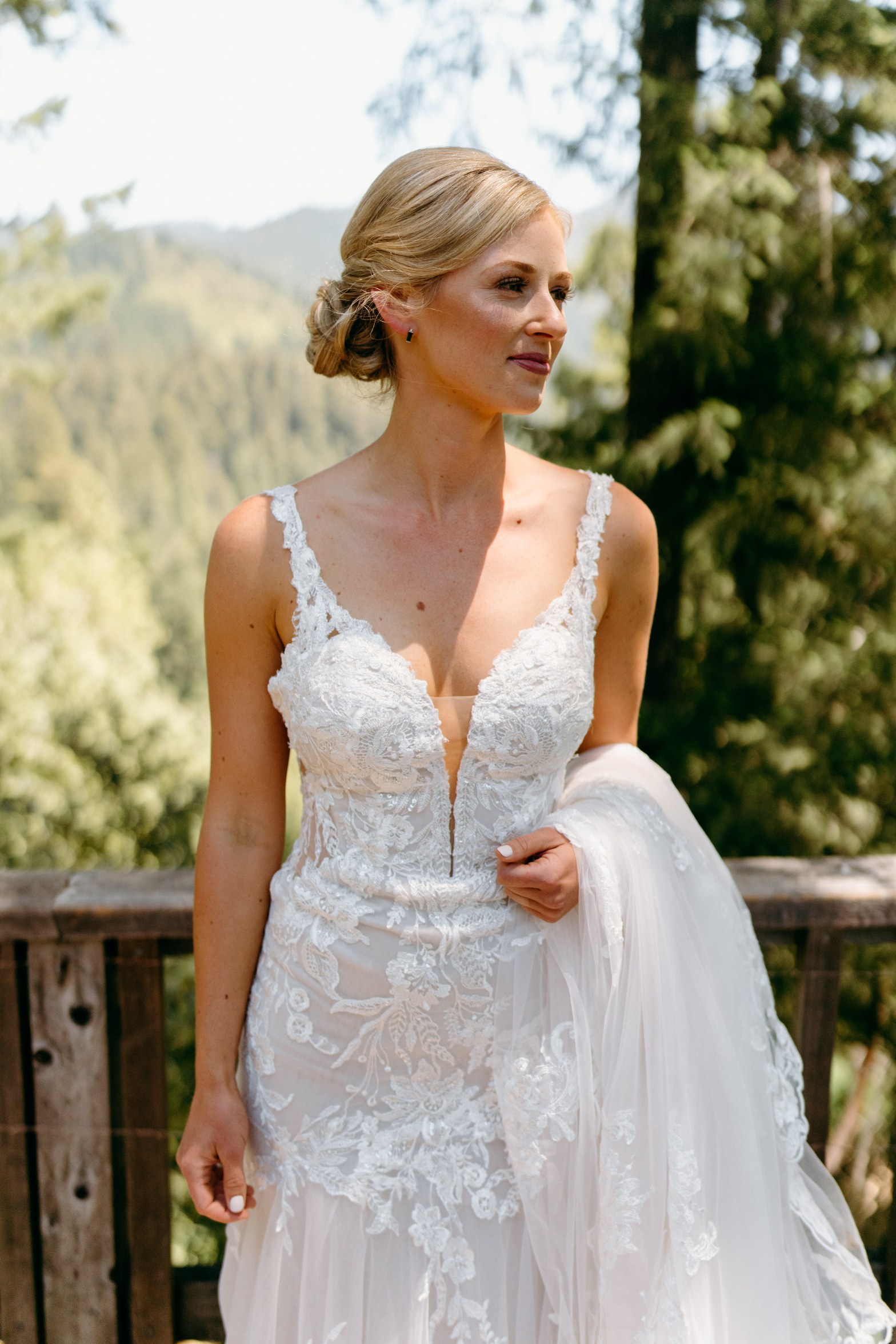 I mentioned working outside in the sun getting the venue ready… which, yes, led to some tan lines. So I called in my makeup pro for a spray tan. I am so glad I did this! I didn’t think I would need one, but in hindsight recommend to everyone, no matter what your dress looks like or the details leading up to your big day. Having nice, tan skin is an extra boost of confidence in itself, especially so when it evens out any lines that could distract from your wedding dress!! I worked with Pure Makeup in Eureka (love Maria!) . It was an awesome experience, and I loved how she made me look and feel. (She also did my final eye brow wax/touches before the big day.)