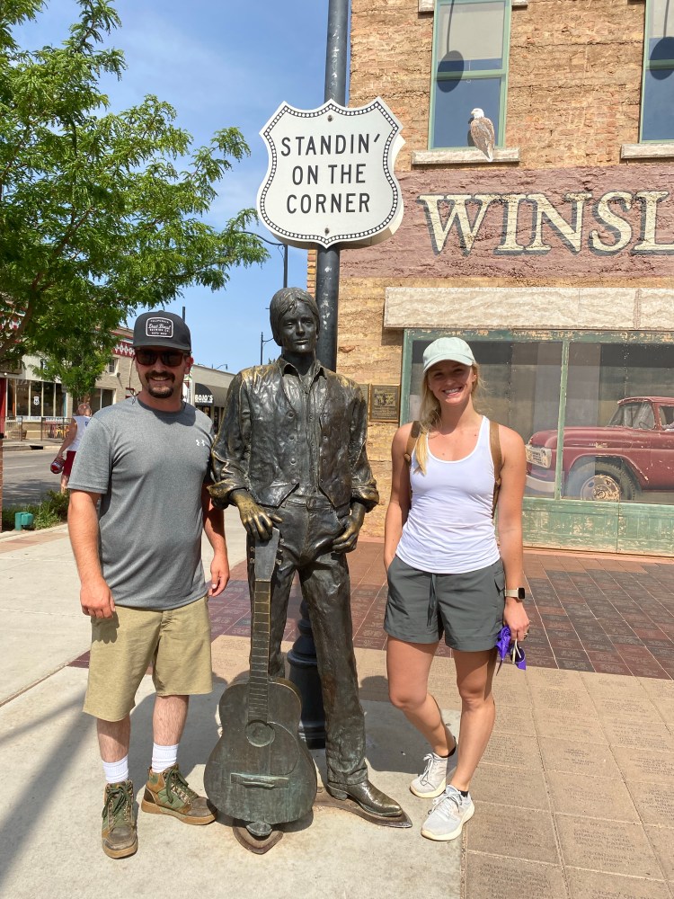 Since we got the hike wrapped up early, we jumped back in the car and headed to the Grand Canyon. It was about a 2.5 hour drive, but a gorgeous one! On the way, we made a pitstop (well, it was a bit out of the way…). But how can you pass up a visit to Winslow, Arizona?! There is a great spot on the corner for pictures (see below), and a few touristy shops nearby, otherwise it’s a pretty quiet little place. It was a spontaneous decision, but I am glad we decided to reroute and check it out while we were in the area.