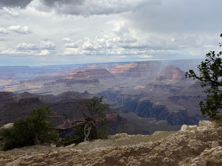 Don’t get me wrong, the thunder, lighting, and rain didn’t slow me down. I still went to as many cliff edges, and saw as much of the canyon as I could. Seeing the storm roll into the canyon was awesome. The lighting and rain in the distance, hearing the thunder crack, I absolutely loved all of it. I am thankful the summer storm gave us a different kind of experience!