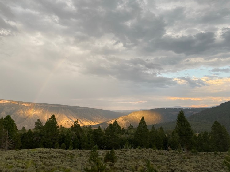 Once we got the necessary information and direction, we got through the gate and checked in. I would recommend reading through all the instructions and doing a little research on protocol before arriving – it would have saved us some time and frustration. But, all-in-all, we were happy to arrive and absolutely loved staying there. All trailheads were within walking distance of our room, which meant we could hike whenever we wanted (no bus schedule to adhere to), and could miss some of the crowds. This was especially helpful since there was a rainstorm the afternoon we arrived. We decided to get a snack and some beer at the restaurant, and got to relax at our little cabin until the storm passed. Once the rain let up, we hit the trail! We thought we’d just do a short little hike that evening, and then a big one in the morning before heading to Montana.