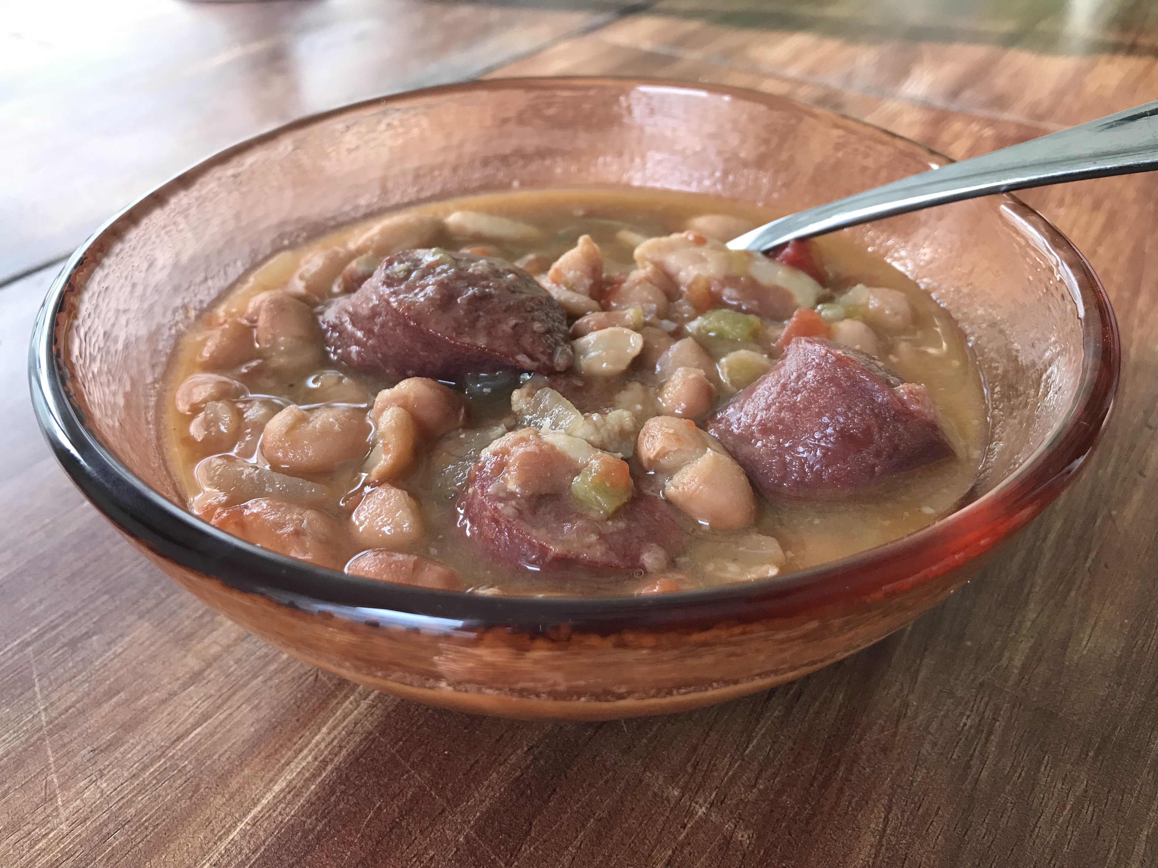 I find it humorous that I chose to post about beans as my first recipe. For starters, it is one of the most unphotogenic foods you can find. I mean, they were delicious, but even with good lighting and at the right angle, this is not a supermodel-esque recipe. Secondly, it was about 80 degrees here today. Not really “bean” weather. But these were on my menu and by golly we were having beans. Lastly, and probably most humorous, is the fact that I don’t like beans. Never have. God love her, my mom would make beans (cue back to my first post, we were undoubtedly poor), and I thought they were awful and nasty and I hated the meat in them and I made it known that I didn’t like them (sorry mom, that wasn’t very nice in hindsight). BUT, I did find a good base recipe that I took my own spin on, and found these to be quite delicious. Albeit I think they’d taste better if it was cold and I was cozied up on the couch, but either way they’re yummy and easy, and what food better highlights my “beer” side…?